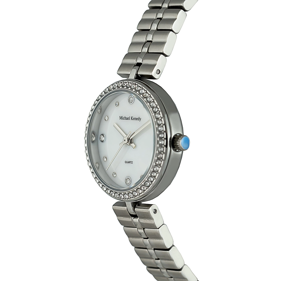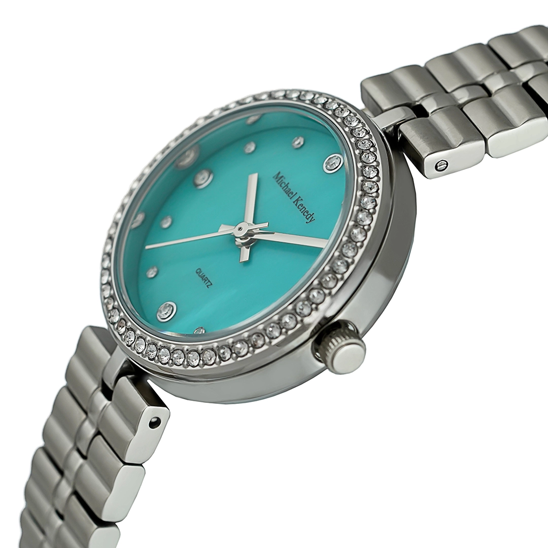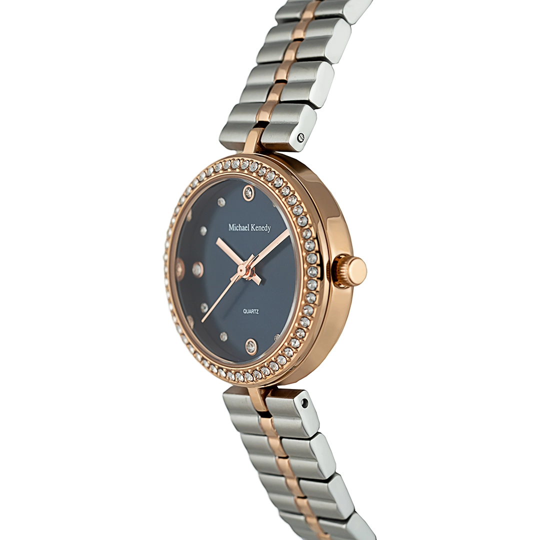 ساعت زنانه مایکل کندی مدل MK1030 از برند مایکل کندی، ترکیبی از طراحی لوکس و عملکرد دقیق است. قاب نگینکاریشده چندضلعی، صفحه خاص و بند استیل با طراحی متفاوت، این ساعت را به انتخابی منحصربهفرد برای بانوان خوشسلیقه تبدیل کرده است. موتور ژاپنی میوتا، شیشه مقاوم و عقربههای شبنما، کارایی را در کنار زیبایی تضمین میکنند.