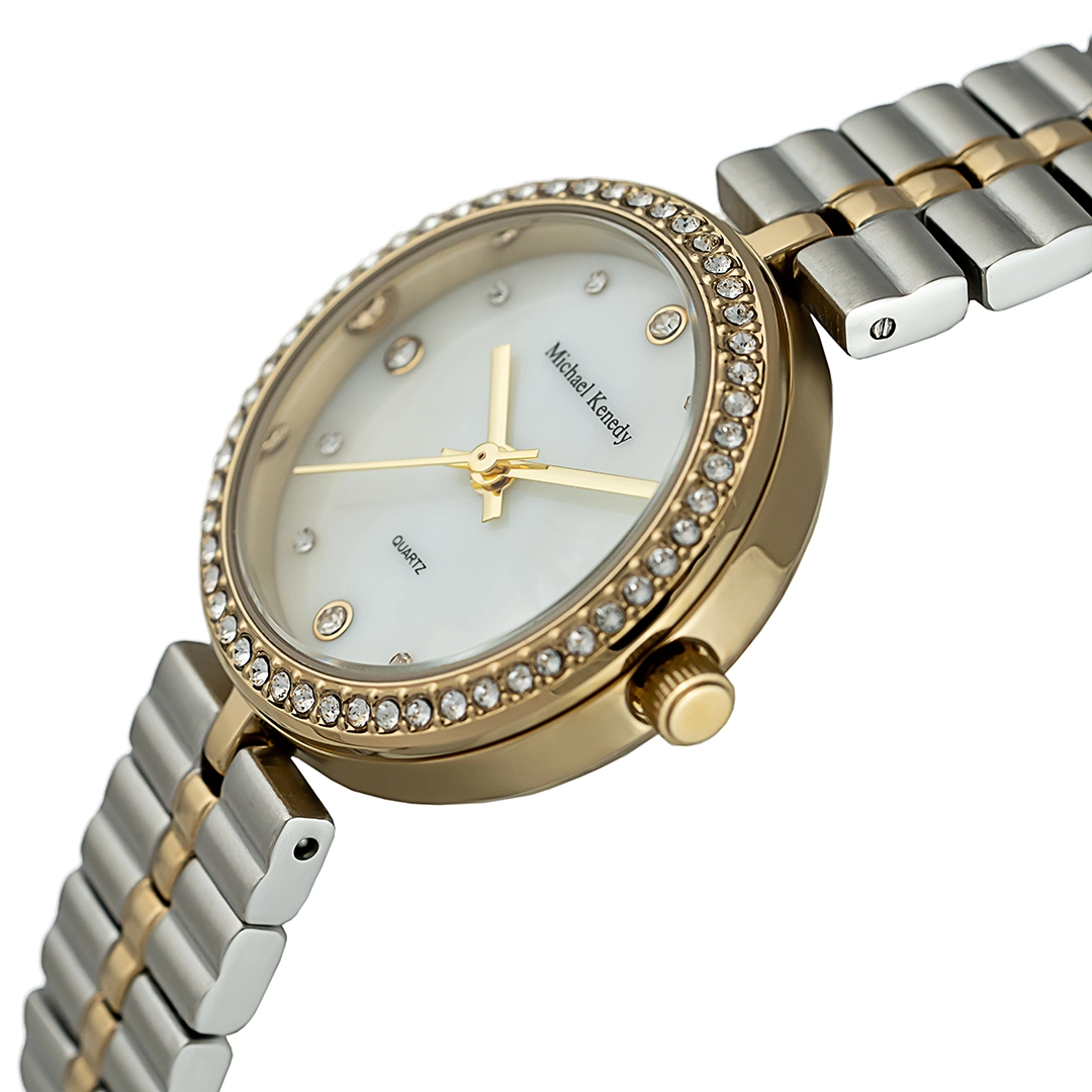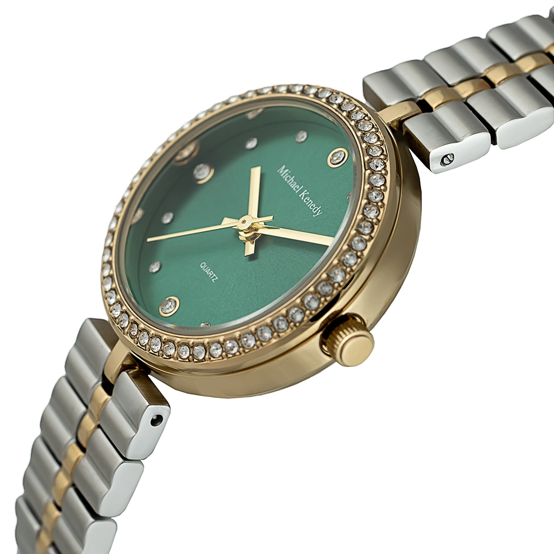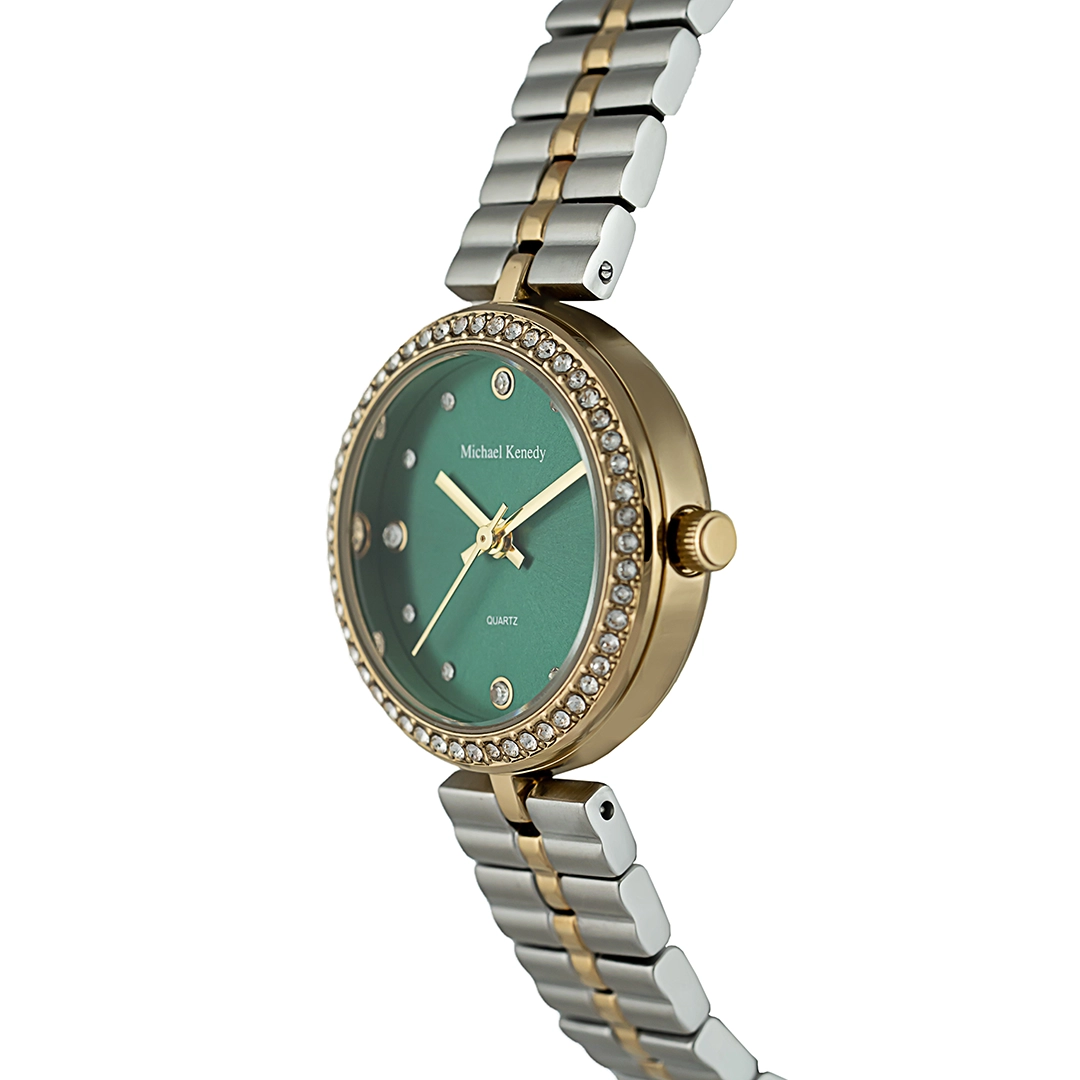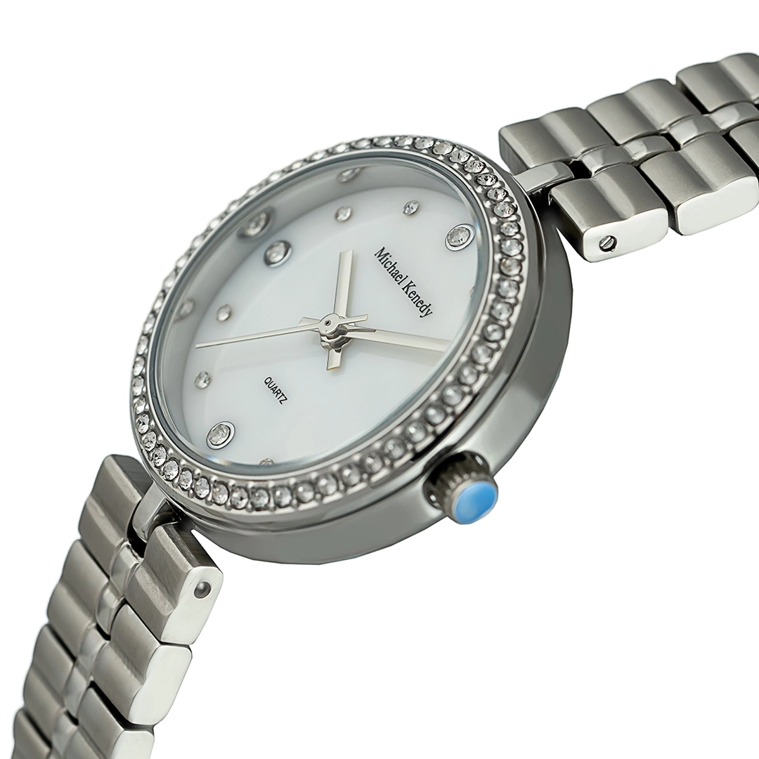 ساعت زنانه مایکل کندی مدل MK1030 از برند مایکل کندی، ترکیبی از طراحی لوکس و عملکرد دقیق است. قاب نگینکاریشده چندضلعی، صفحه خاص و بند استیل با طراحی متفاوت، این ساعت را به انتخابی منحصربهفرد برای بانوان خوشسلیقه تبدیل کرده است. موتور ژاپنی میوتا، شیشه مقاوم و عقربههای شبنما، کارایی را در کنار زیبایی تضمین میکنند.